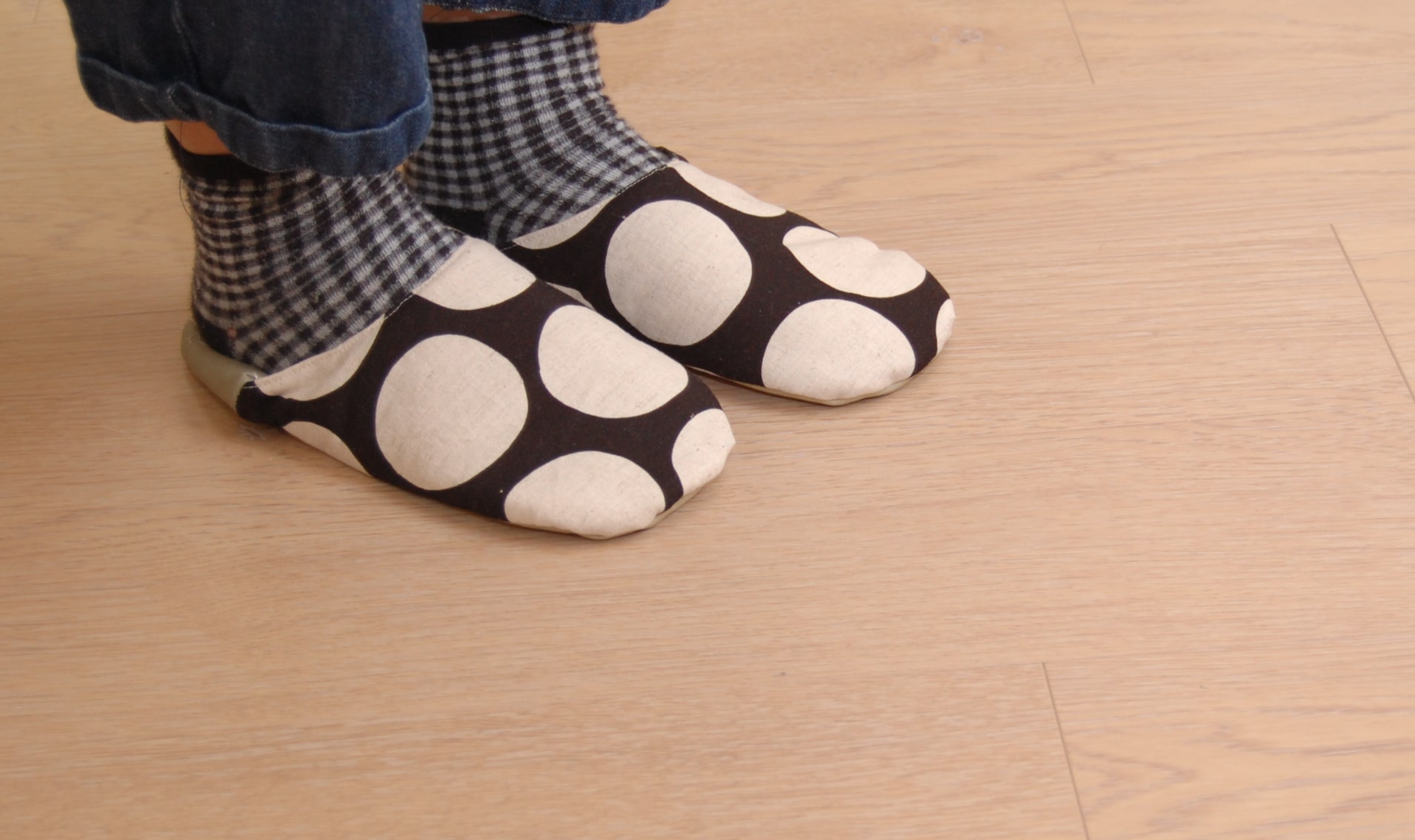 靴下よりも手軽に脱ぎ履きができるので、室内履きに大活躍です。